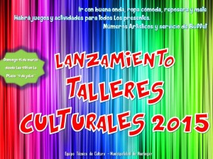 Se invita a la comunidad a presenciar el «Lanzamiento de los Talleres Culturales 2015» (Costura, Manos Artesanas, Taller Literario, Dibujo, Coro, Teatro, Folclore, Tango, Alemán) y la presentación de la Escuela de Danza, este domingo 15 de marzo, desde las 18:00 horas, en Plaza 9 de Julio.-
