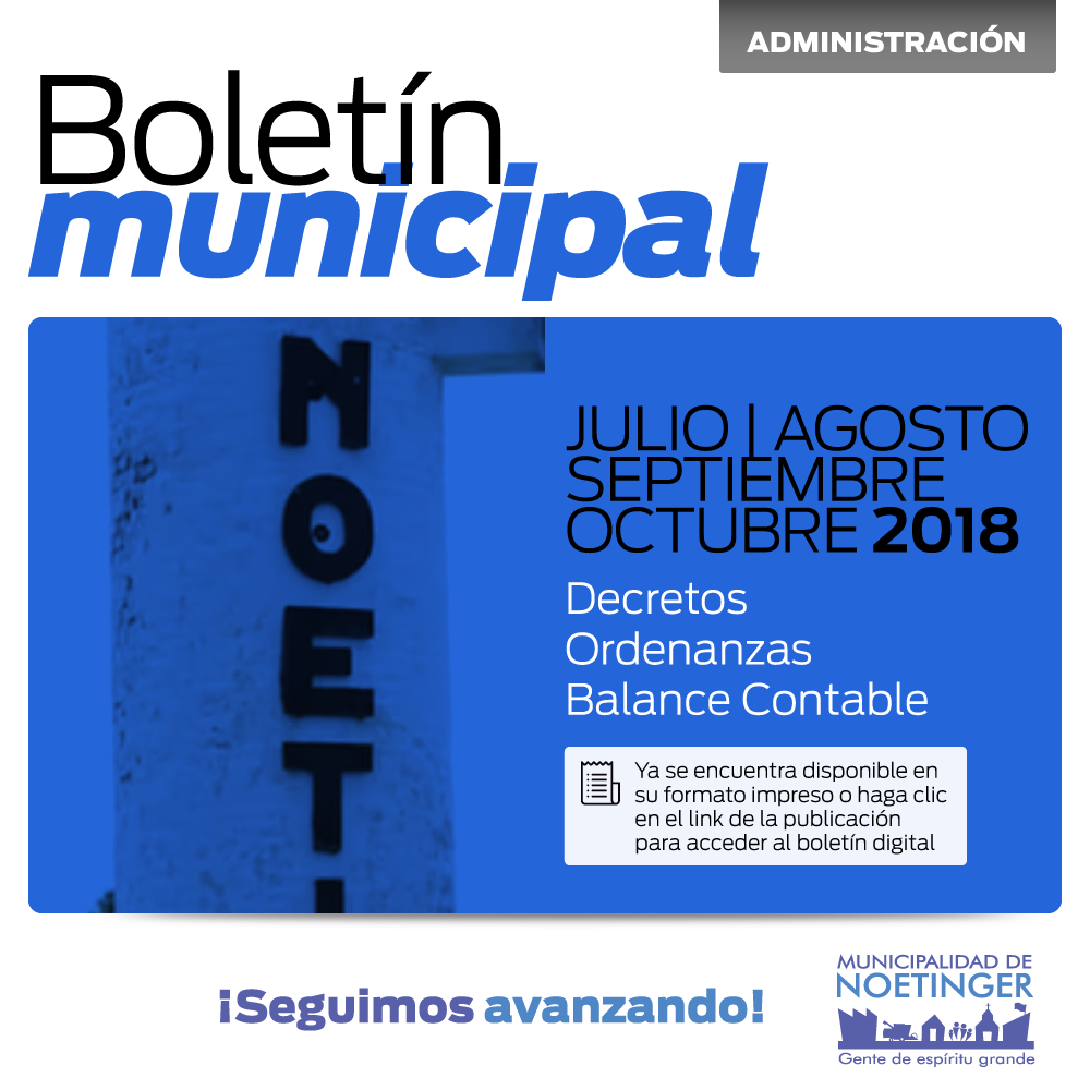 Para consultar acerca del Boletín Nº 04-2018 y Boletines anteriores, ingresar a: http://www.noetinger.gob.ar/boletin-oficial/