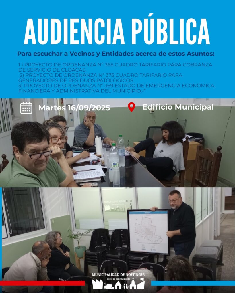 El martes 16/09/2025, a partir de las 19.30 horas, en el edificio municipal, se desarrolló la “Audiencia Pública”, con la presencia de los concejales: Enzo F. Henze (Presidente), y Agustina A. Sanchez (bloque Hacemos Unidos por Córdoba), y Concejales Carlos Coppola y Gabriela Francioni (bloque “Juntos por el Cambio”); y la participación del Intendente Municipal Sr. Marcelo Bjorklund, para dar tratamiento al siguiente “Orden del Día”: