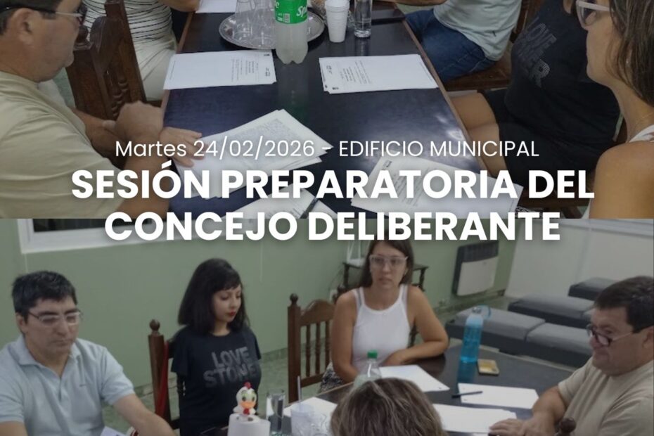 El 24/02/2026, desde las 20:00 horas, en el edificio municipal, se desarrolló la “Sesión Preparatoria” (art. 20º de Ley Orgánica Municipal nº 8102) con la presencia de los concejales Enzo F. Henze (Presidente), Franca E. Biasella (Vicepresidente 1º), Agustina A. Sanchez (Vicepresidente 2º)y Javier Díaz (bloque “Hacemos Unidos por Córdoba”), y Concejales Carlos Coppola, Analía Juarez Obrvan y ausencia con previo aviso deGabriela Francioni (bloque “Juntos por el Cambio”); para dar tratamiento al siguiente “Orden del Día”: